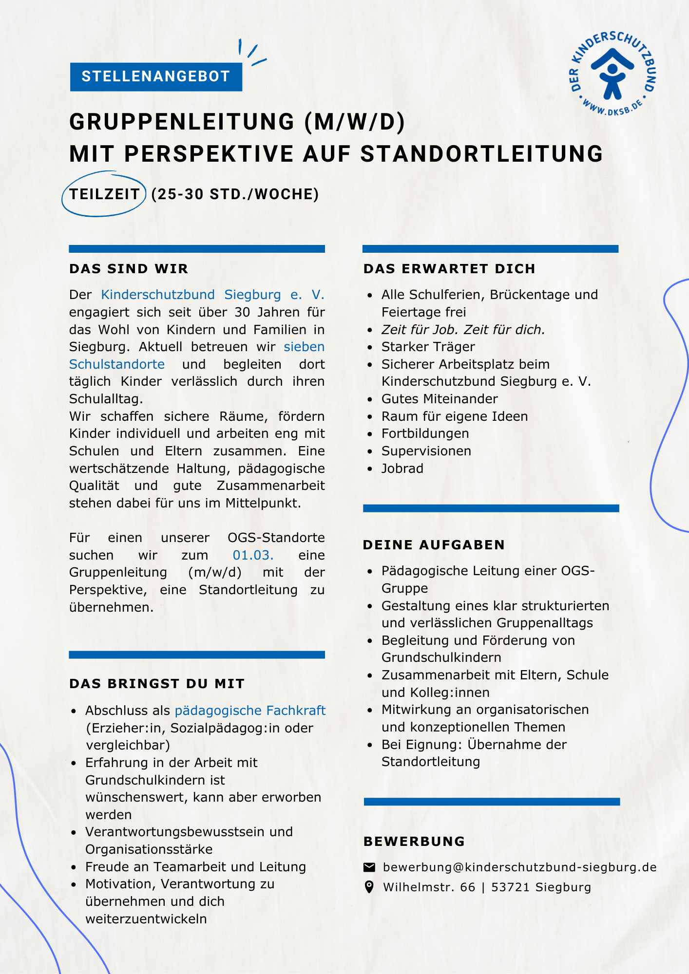 GRUPPENLEITUNG (M/W/D) MIT PERSPEKTIVE AUF STANDORTLEITUNG